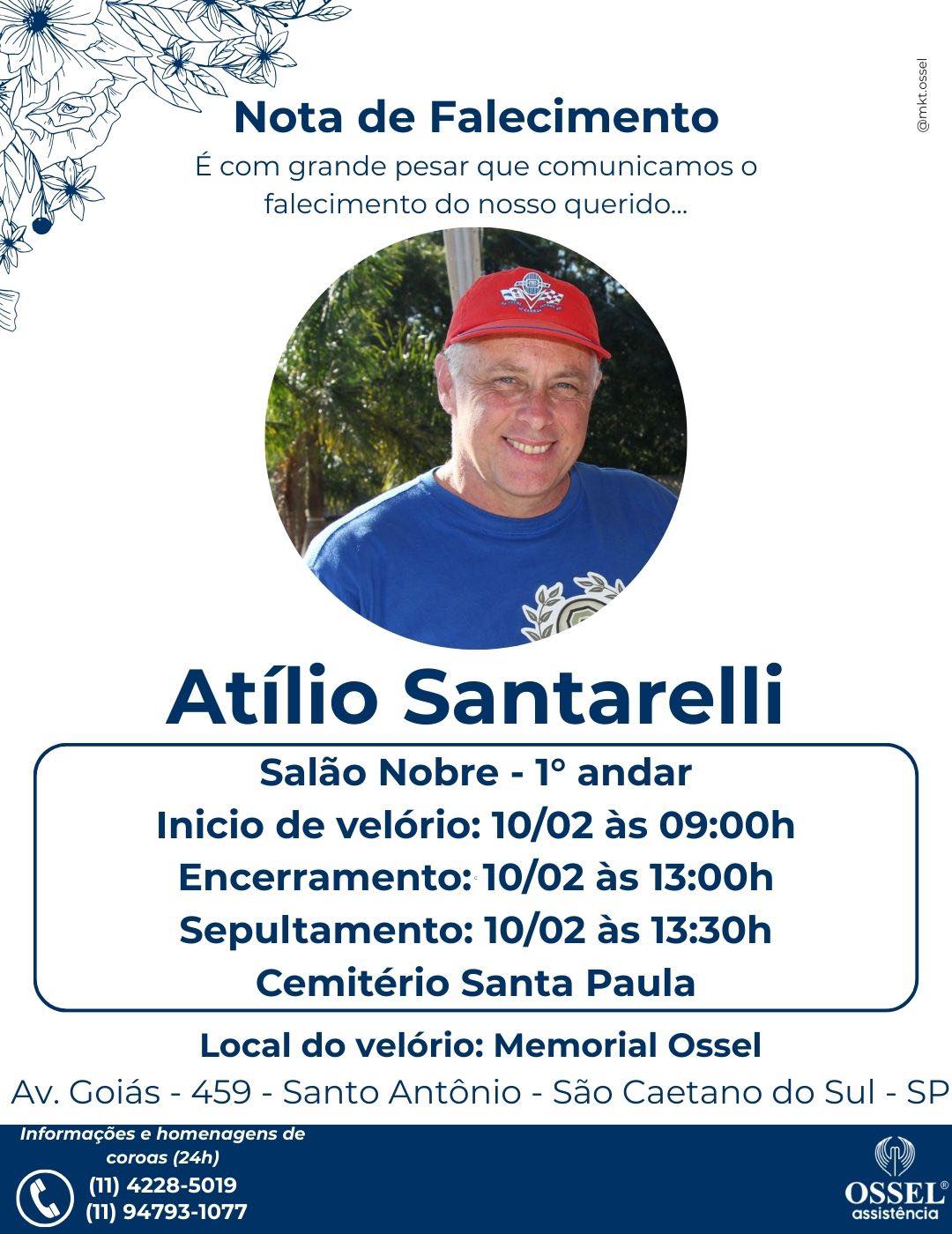 São Caetano do Sul lamenta a morte de Atílio Santarelli, presidente do Automóvel Clube do Grande ABC, ocorrida nesta terça-feira, aos 67 anos. Figura conhecida e respeitada no meio associativo e esportivo da região, Santarelli teve atuação marcante à frente da entidade, contribuindo para o fortalecimento do automobilismo e do associativismo no ABC...