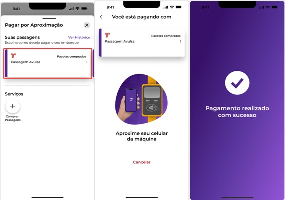 7. Aproxime o seu celular no equipamento de validação do ônibus e boa viagem!