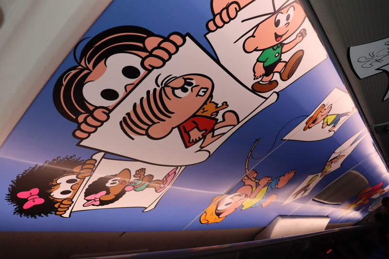 do tempo. Já no interior, os passageiros encontram um painel afetivo com